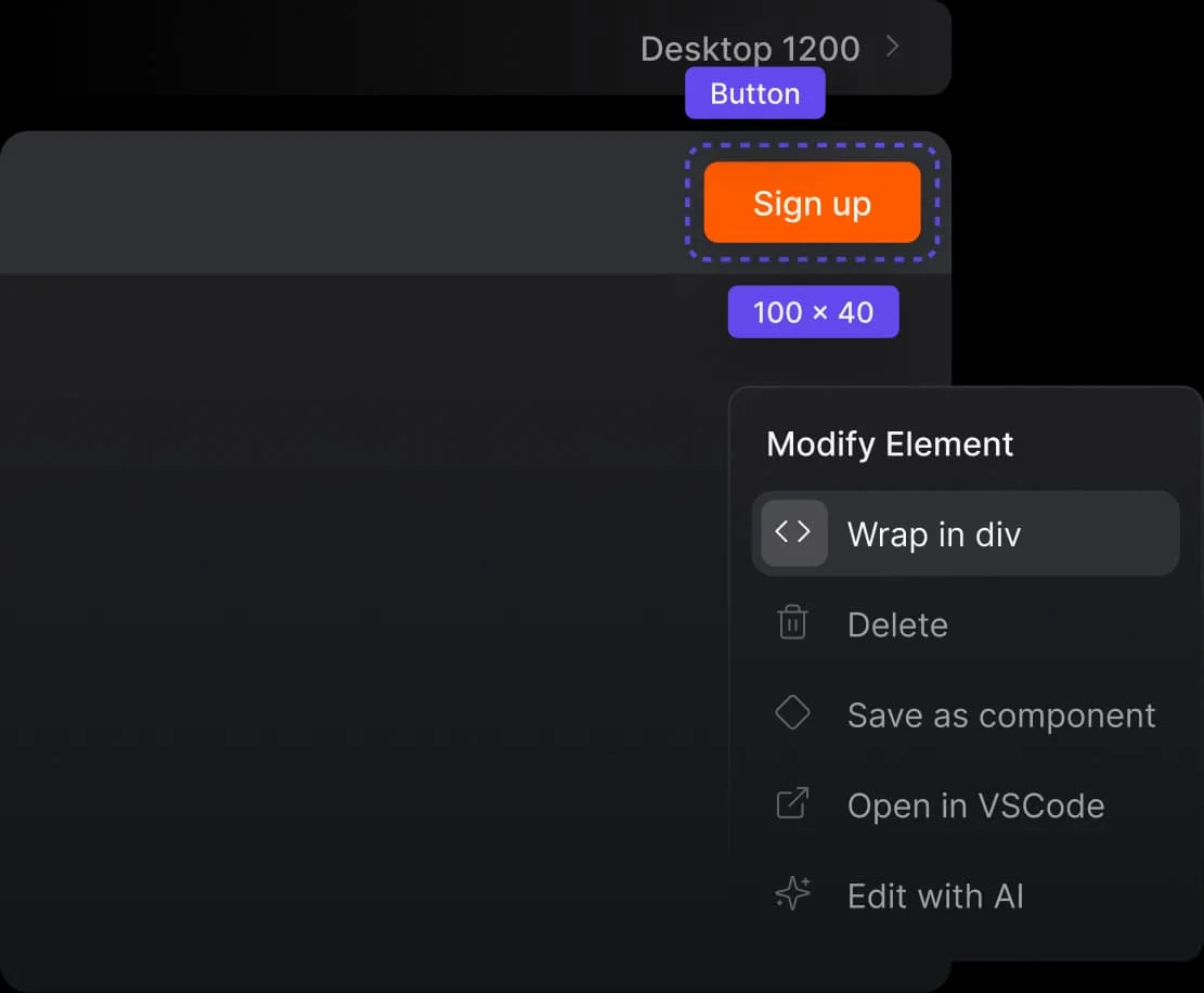 - Use the visual editor to edit your code, customize components, and manage design details easily.