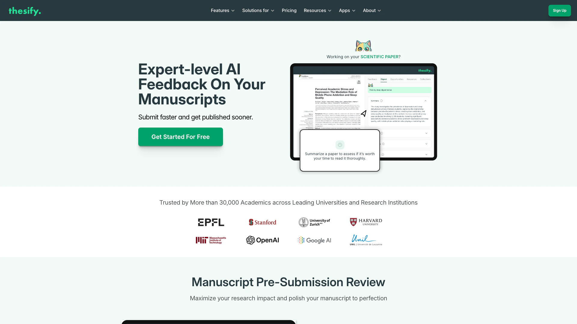 - Real-Time Feedback: Thesify provides instant, AI-powered feedback on academic writing, allowing users to refine their ideas and improve their manuscripts quickly.