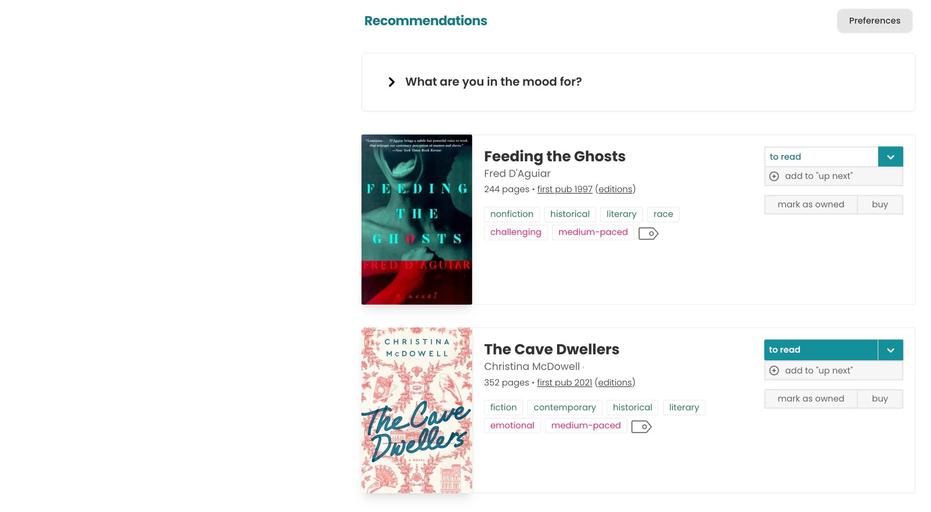 - Use the mood and theme filters to discover new books tailored to your preferences.