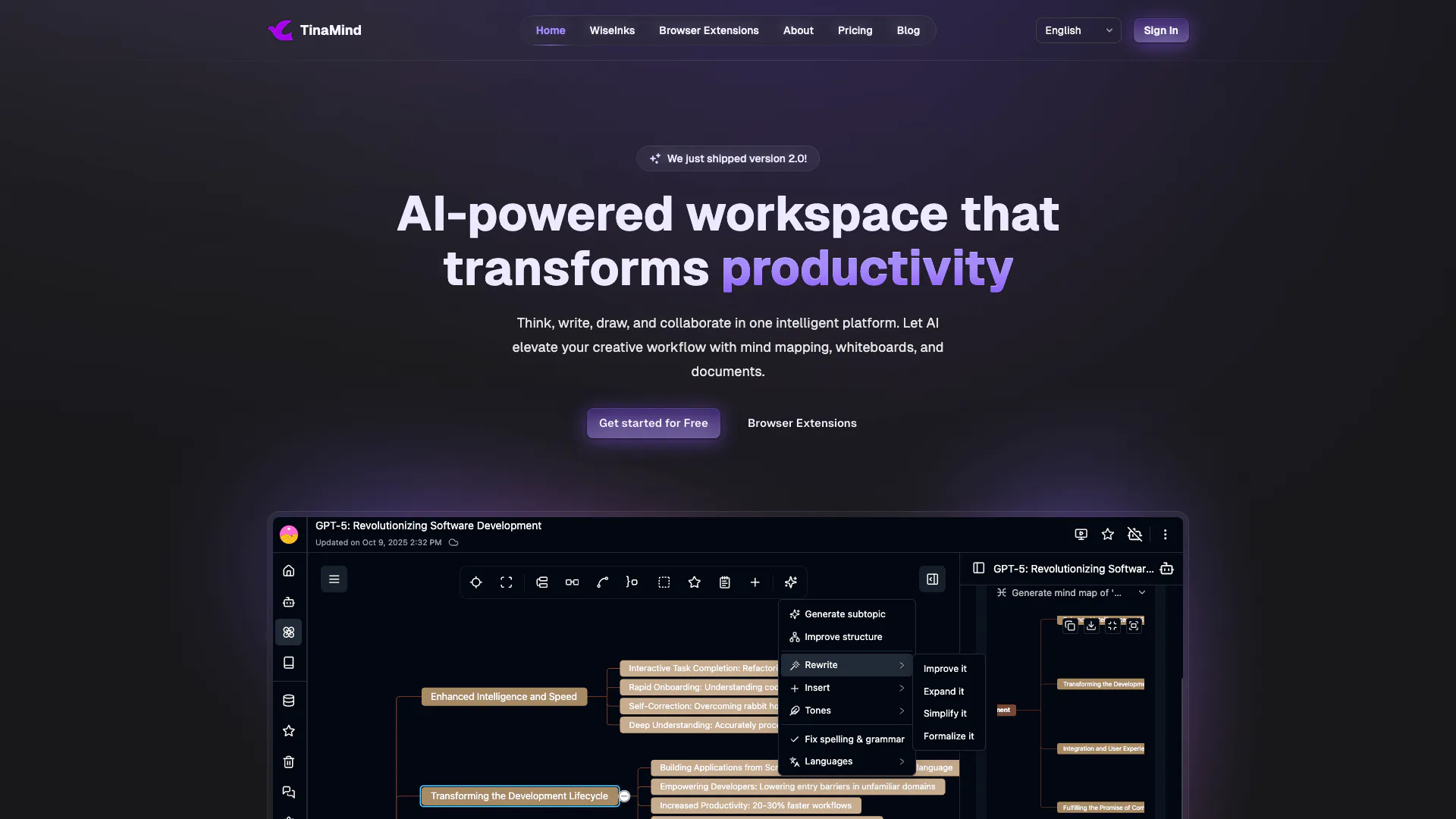 Tinamind is an AI-powered workspace that transforms productivity by allowing users to think, write, draw, and collaborate in one intelligent platform.
