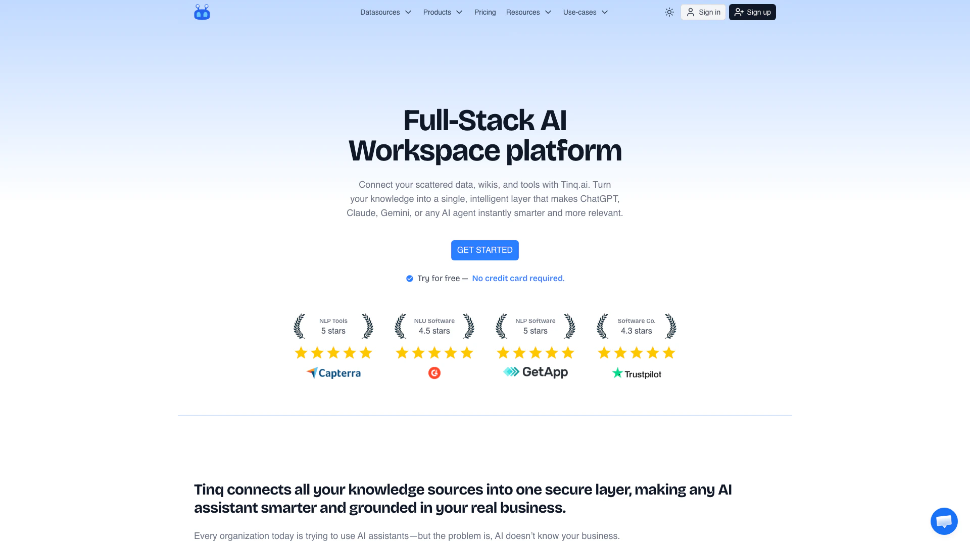 - Plug Tinq into any AI: Direct your AI assistant to Tinq’s endpoint, enabling it to provide context-aware answers using your organization's data.