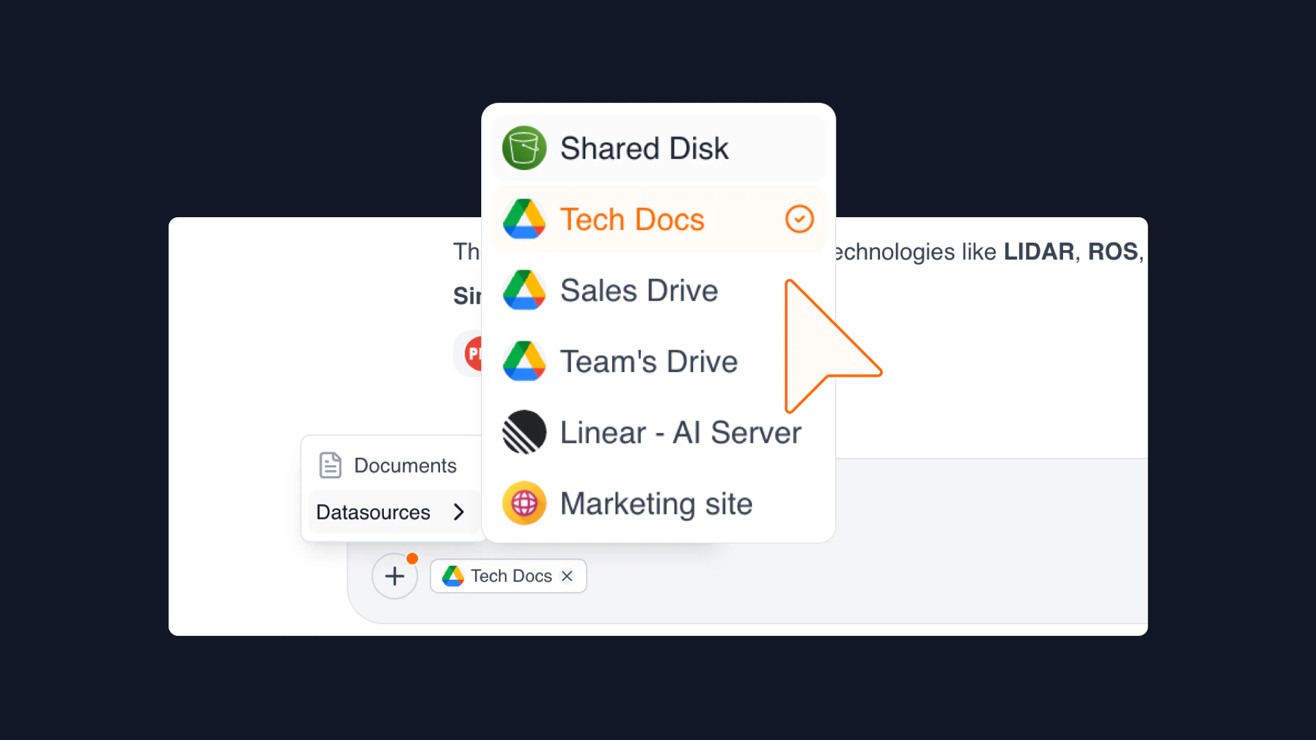 - Data source integration: Seamlessly connect various platforms like Google Drive, SharePoint, and CRMs.