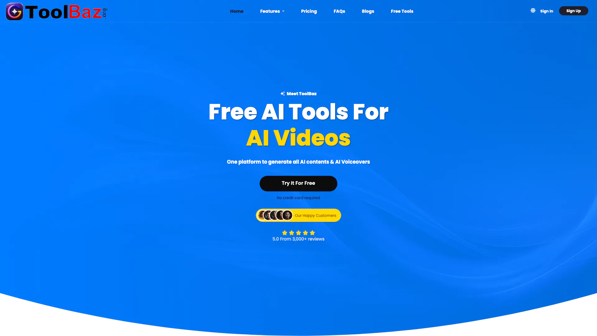 ToolBaz is a platform that covers all AI tools including a Free AI Writer, AI Story Generator, Email Writer, Lyrics Generator, AI Image Generator, AI Voiceover, AI Videos, AI ChatBots, and AI Code Generator.