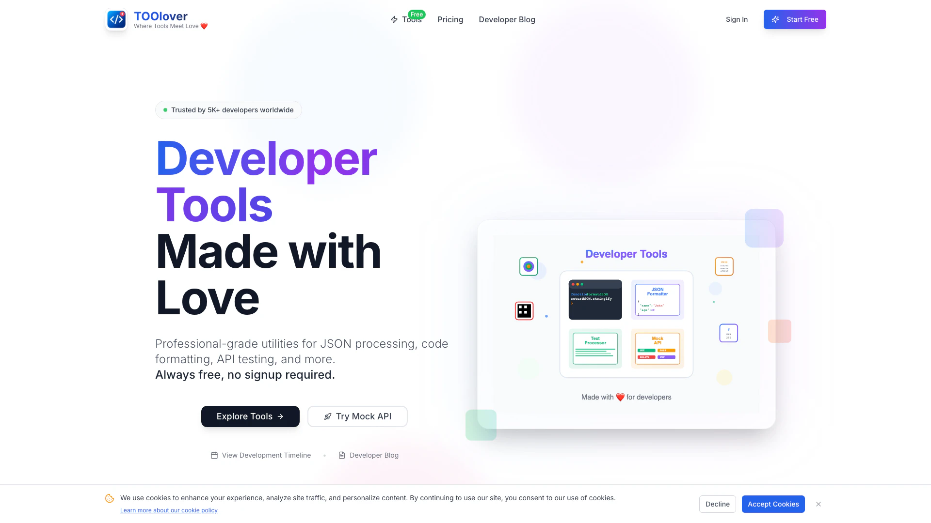 - Comprehensive Tool Suite: TOOlover offers a wide range of professional developer tools, including JSON formatting, code beautification, and API testing, all in one platform.