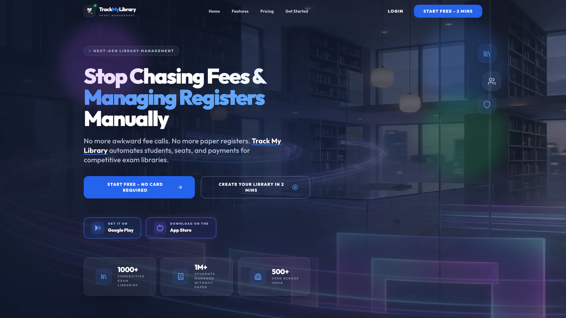 - Create Your Library: Begin by setting up your library details and seating layout in under 2 minutes.