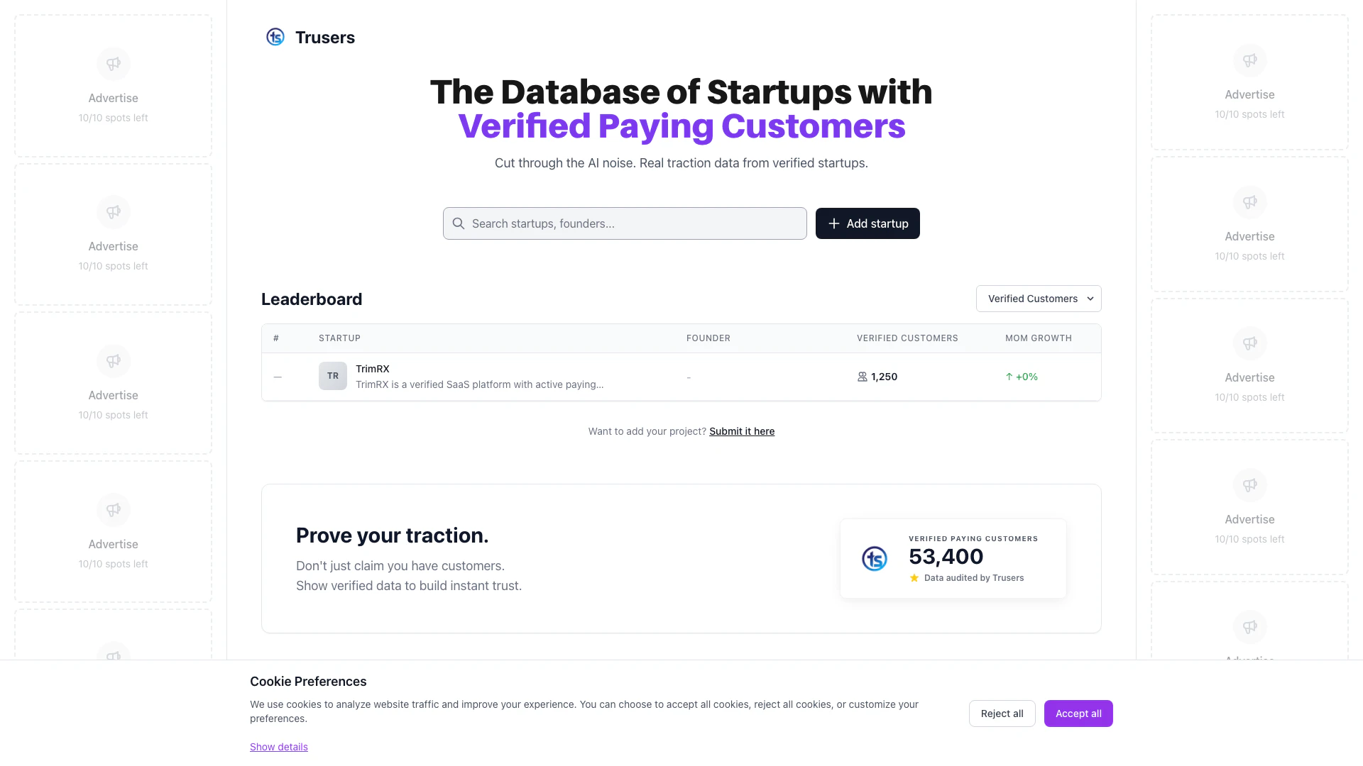 - Verified Profile on Leaderboard: Users can gain a verified profile on Trusers' leaderboard, showcasing their business traction to potential customers.