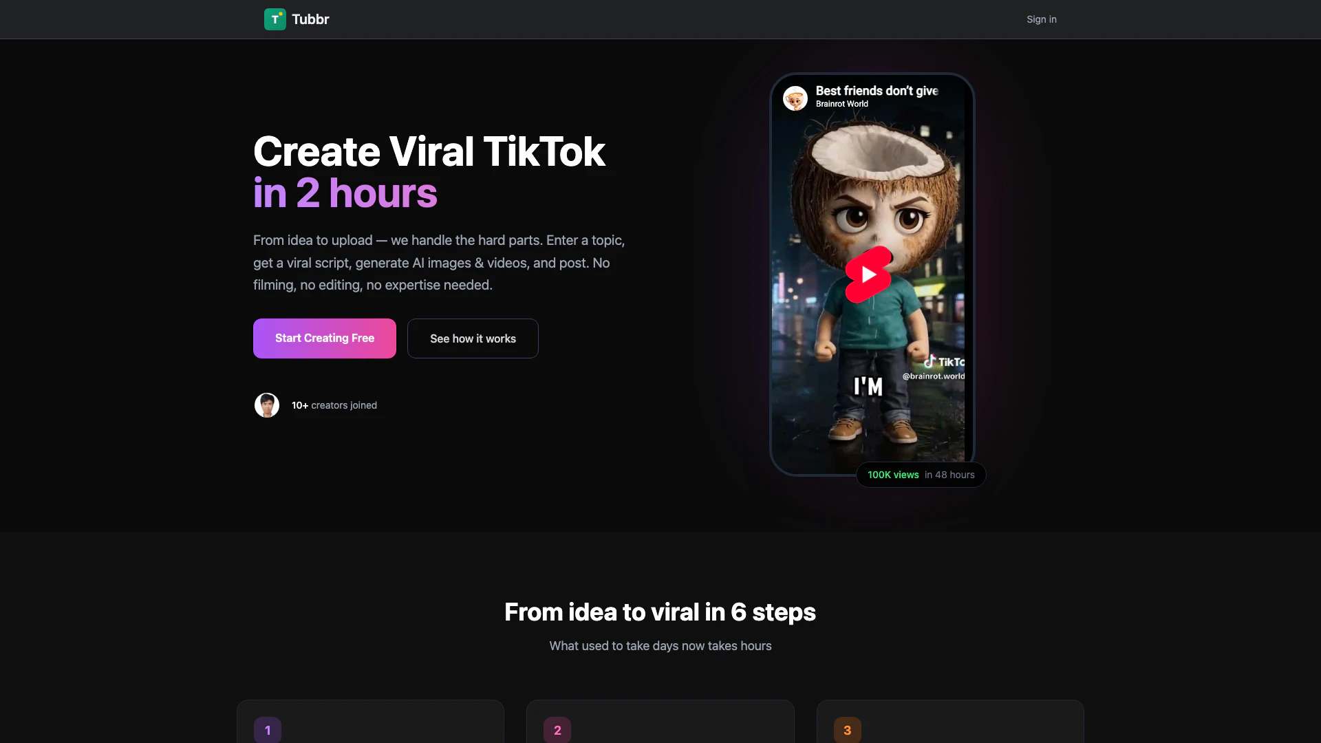 Trytubbr is ideal for content creators on platforms like TikTok and YouTube who want to produce high-quality, engaging videos without the burden of traditional video production. It caters to both novice creators who lack technical skills and experienced professionals looking to save time and streamline their content creation process. Whether you're a small business, influencer, or hobbyist, Trytubbr provides an accessible solution for making viral content.