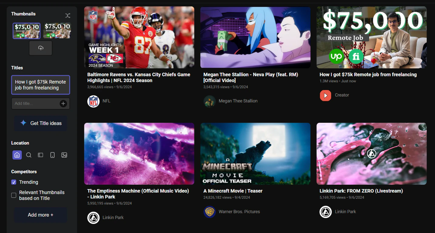 - Thumbnail Testing: Test thumbnails against competitors and existing videos to maximize click-through rates.