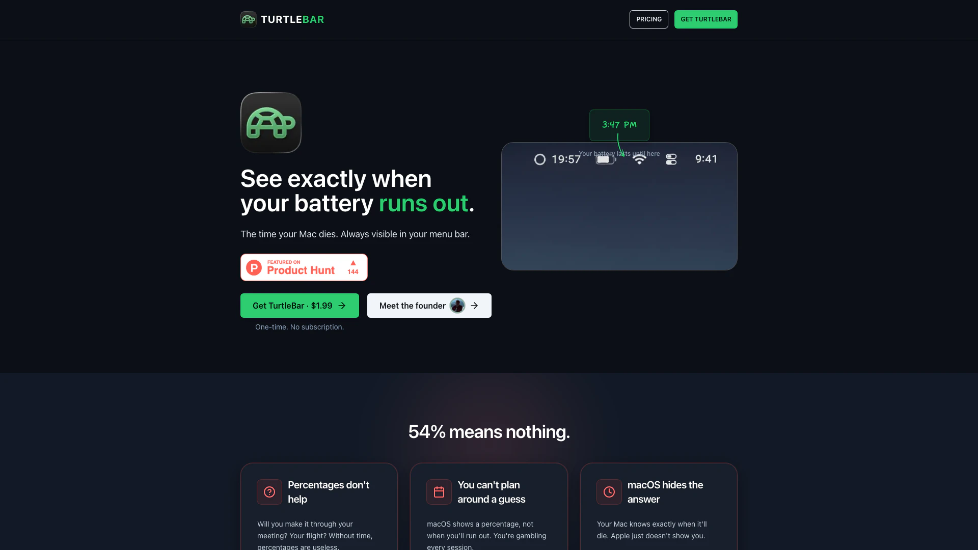 TurtleBar is designed for Mac users who want precise information about their battery life. It is particularly useful for professionals who rely on their laptops for meetings, travel, or work sessions and need to know exactly how long they can continue working without needing to recharge. This tool is ideal for anyone who finds the standard percentage display inadequate for planning their activities.