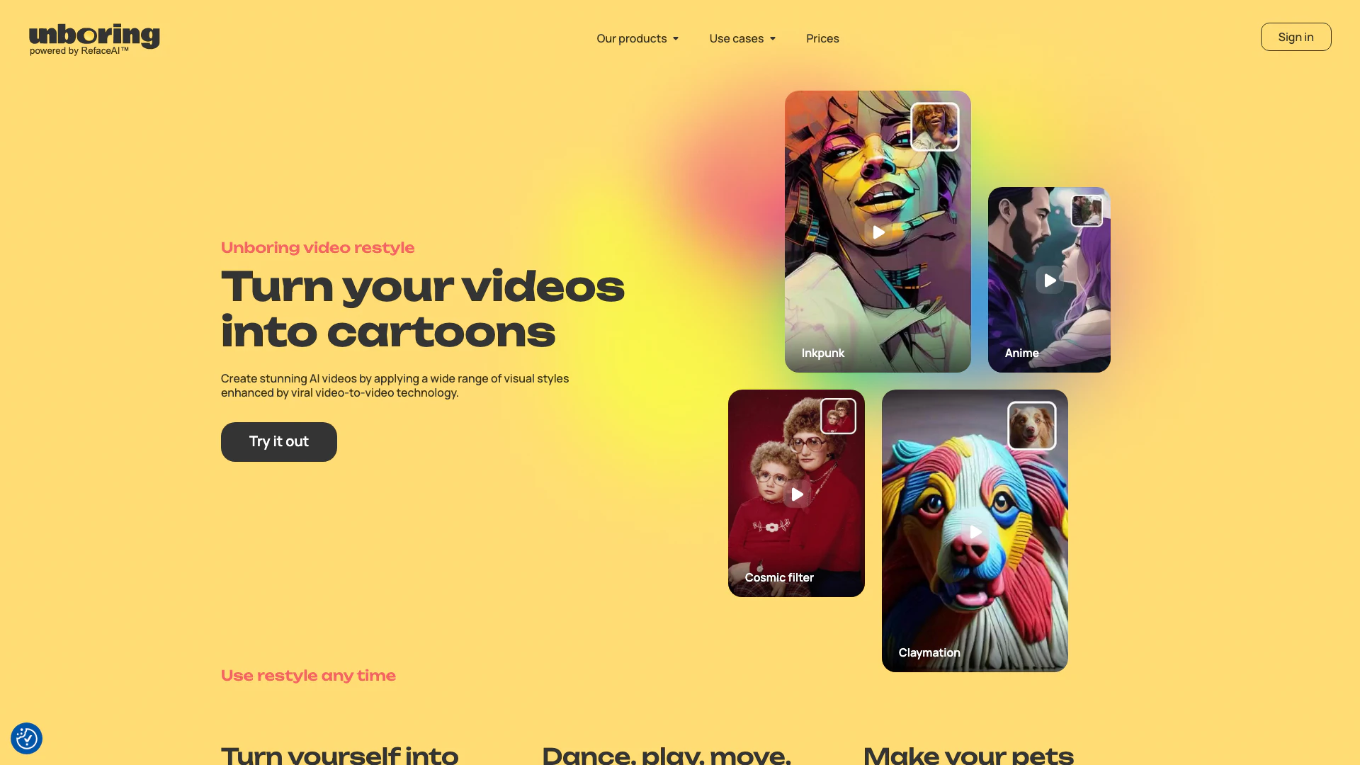 - AI-Powered Video Restyling: Transform your videos into stunning animations with various visual styles using advanced AI technology.