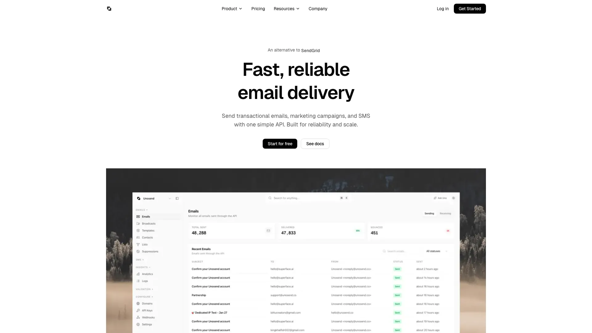 Unosend is a powerful transactional email API designed specifically for developers, offering a robust solution for sending emails with a remarkable 99.9% deliverability rate. With its simple API and SMTP interface, Unosend allows users to send transactional emails and marketing campaigns efficiently. The platform provides a generous free plan that includes 5,000 emails per month, making it accessible for startups and developers looking to integrate email functionality into their applications without the complexity often associated with email delivery systems.