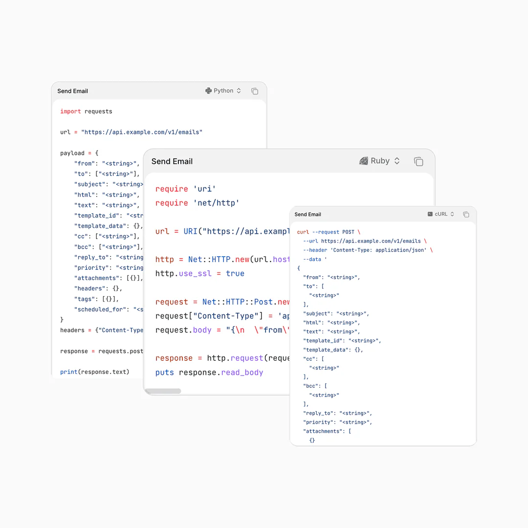 - Simple API and SMTP integration suitable for any programming language.