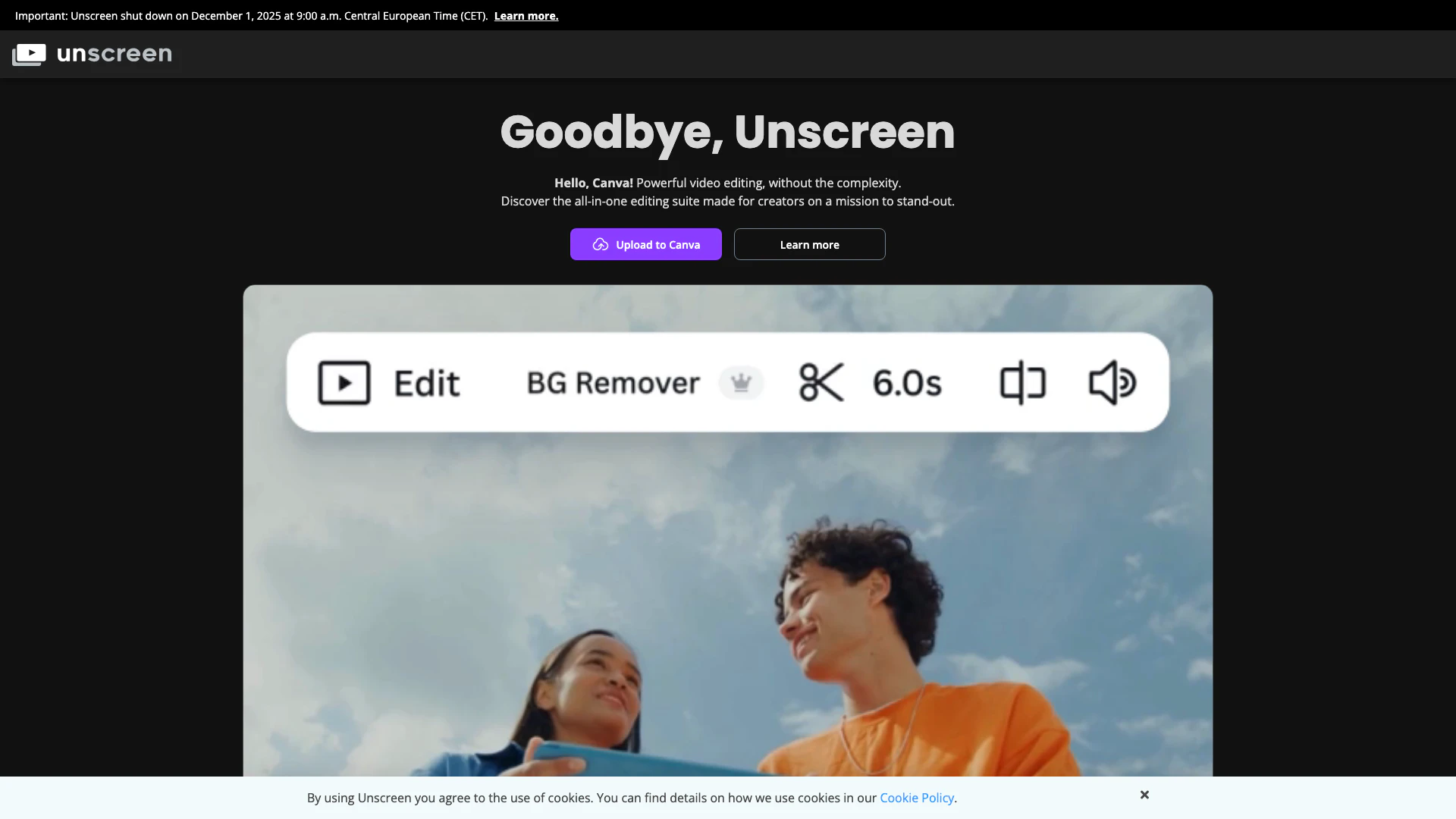 Unscreen will shut down on December 1, 2025 at 9:00 a.m. Central European Time (CET).