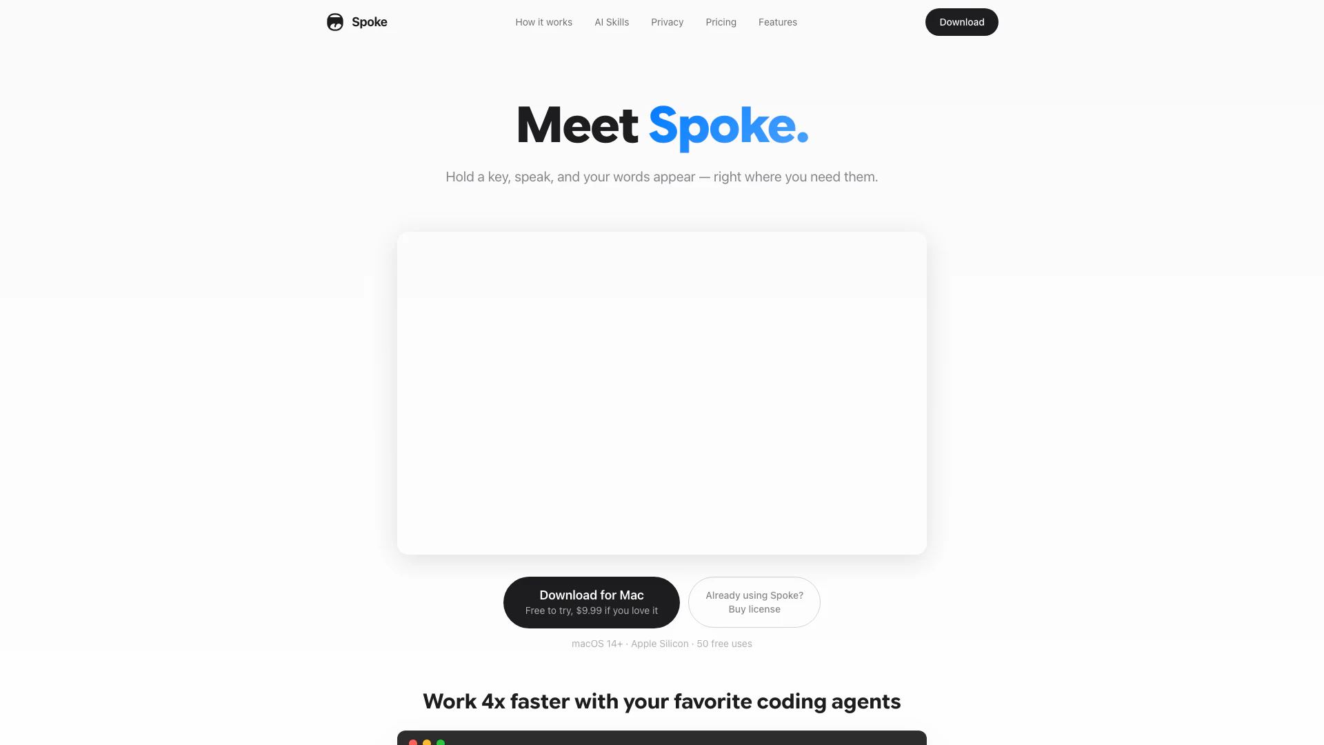 - Download and Install: Visit the [Usespoke website](https://usespoke.app/download/Spoke-1.0.0.dmg) to download the application for macOS.