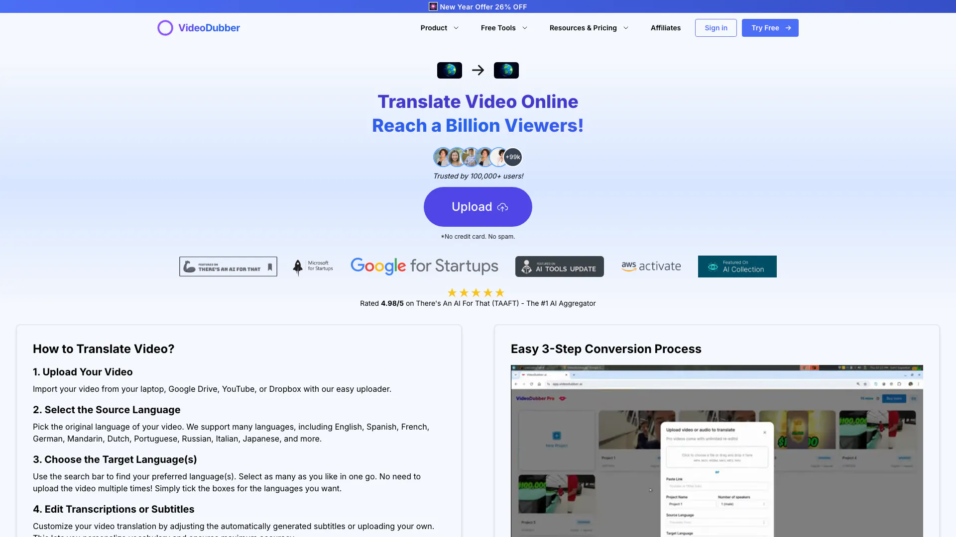 - User-Friendly Interface: A simple, intuitive interface that allows for quick video uploads and translations.