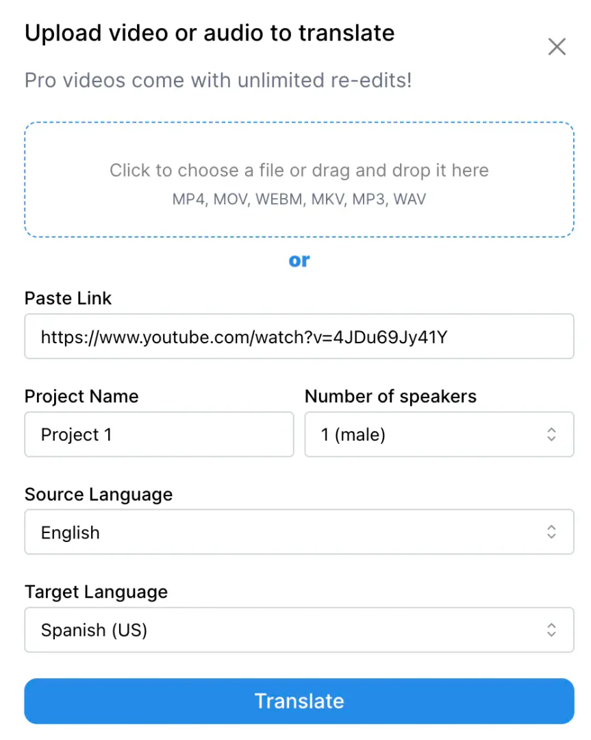 - Unlimited Free Editing: Users can make unlimited edits to their translated videos without any additional costs, ensuring flexibility and control over the final output.