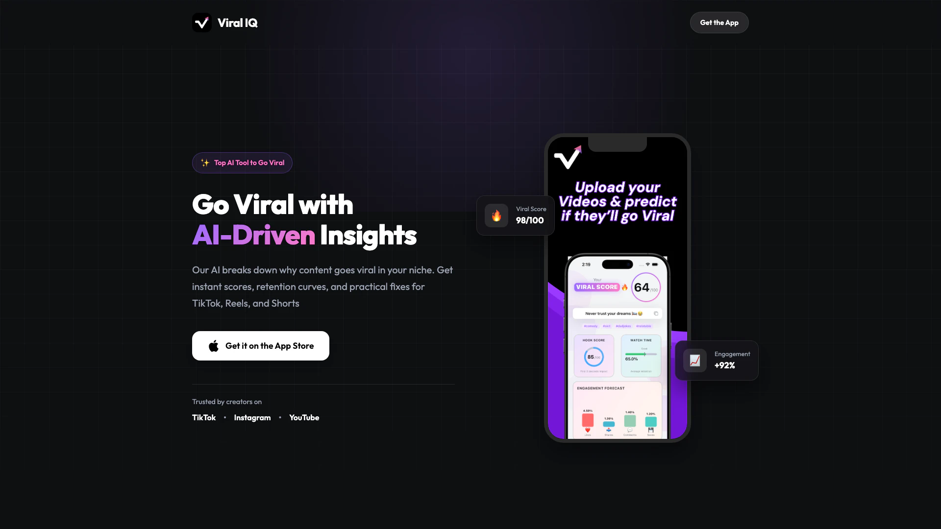 - AI-Driven Viral Insights: Viral IQ provides AI-driven insights that analyze content to predict viral potential, helping creators optimize their videos for TikTok, Reels, and Shorts.