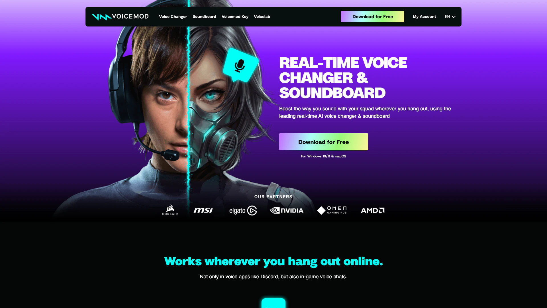 - Choose Your Voice: Pick a voice filter or sound effect from Voicemod’s library and start using it in your calls, games, or streams.