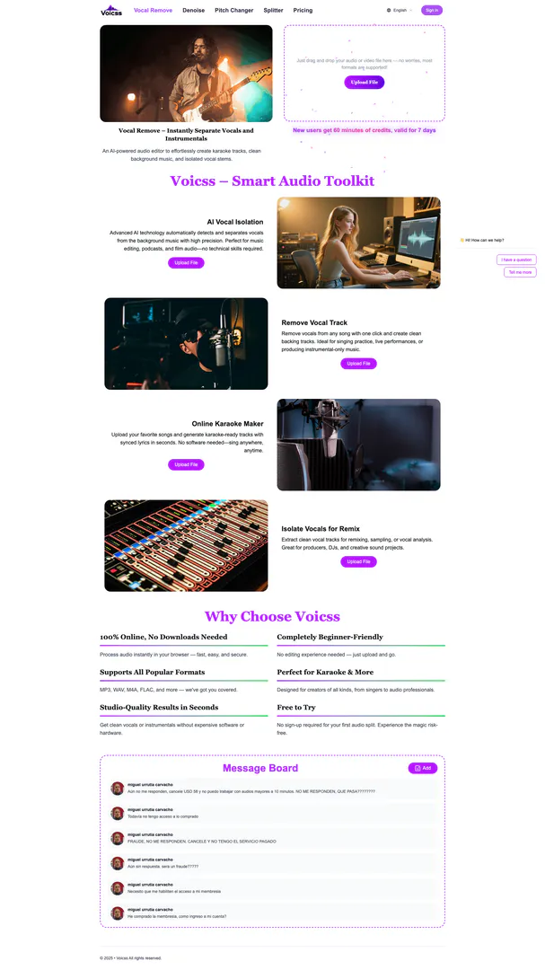 - User-Friendly Interface: Designed for beginners, allowing users to easily upload files and create karaoke tracks without any technical skills.