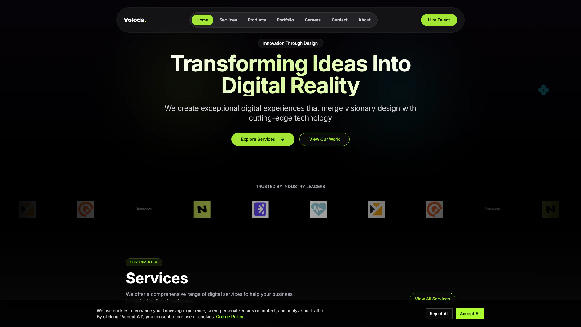Volods is a digital solutions[1] provider that specializes in crafting exceptional digital experiences through visionary design and cutting-edge technology. With a strong focus on innovation, Volods transforms ideas into digital realities, helping businesses thrive in the digital landscape. The company offers a comprehensive range of services, including web development[2], mobile app creation, cloud solutions[4], and AI integration[5], ensuring that clients receive tailored solutions that meet their specific needs.