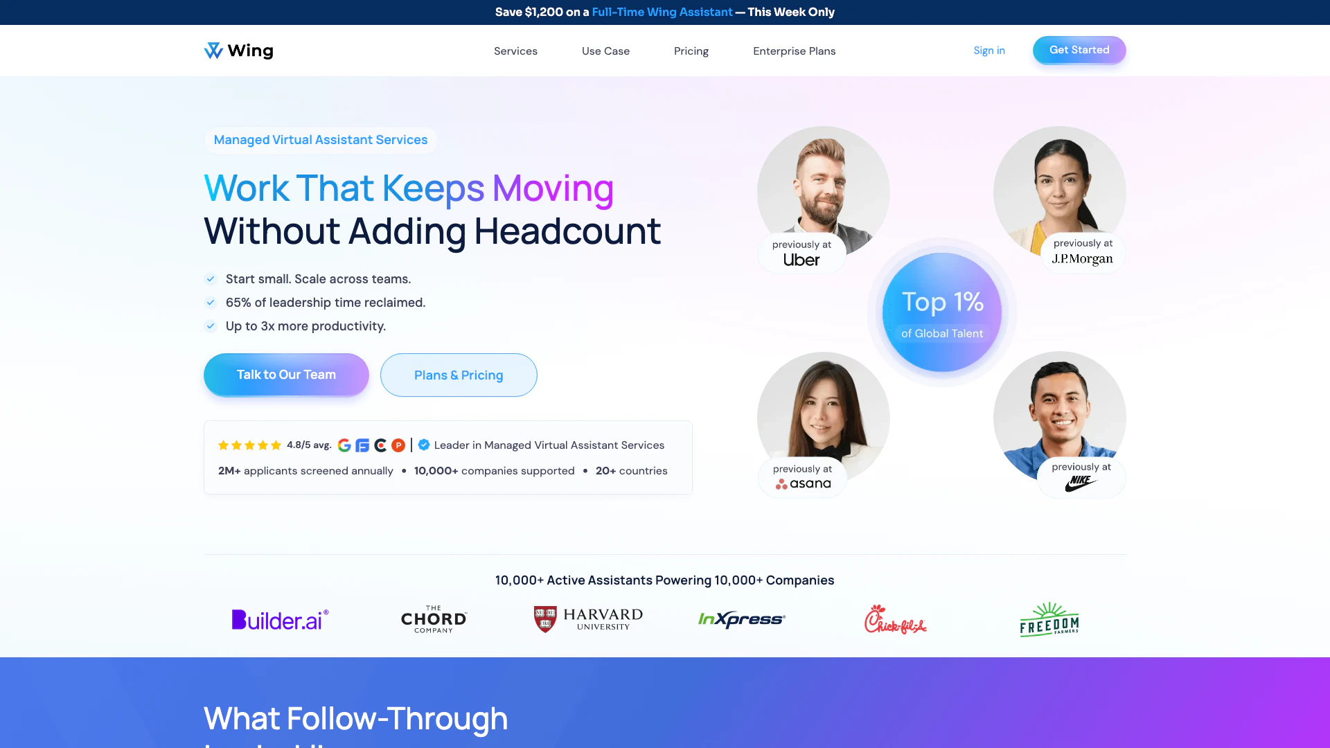 - Wing will match you with a dedicated virtual assistant who is trained and ready to start.