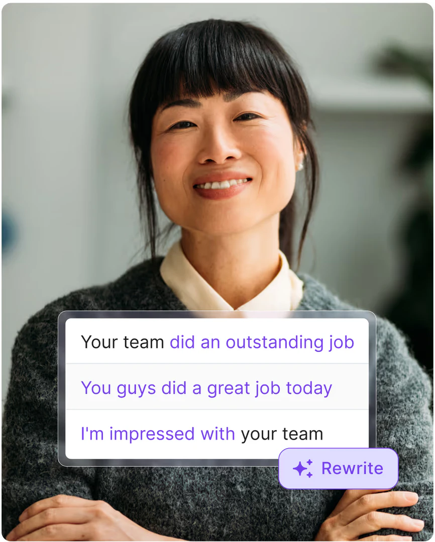 - Contextual Rewrite Suggestions: Users can choose from context-based rewrite suggestions that match their writing style, helping to express thoughts accurately and authentically.