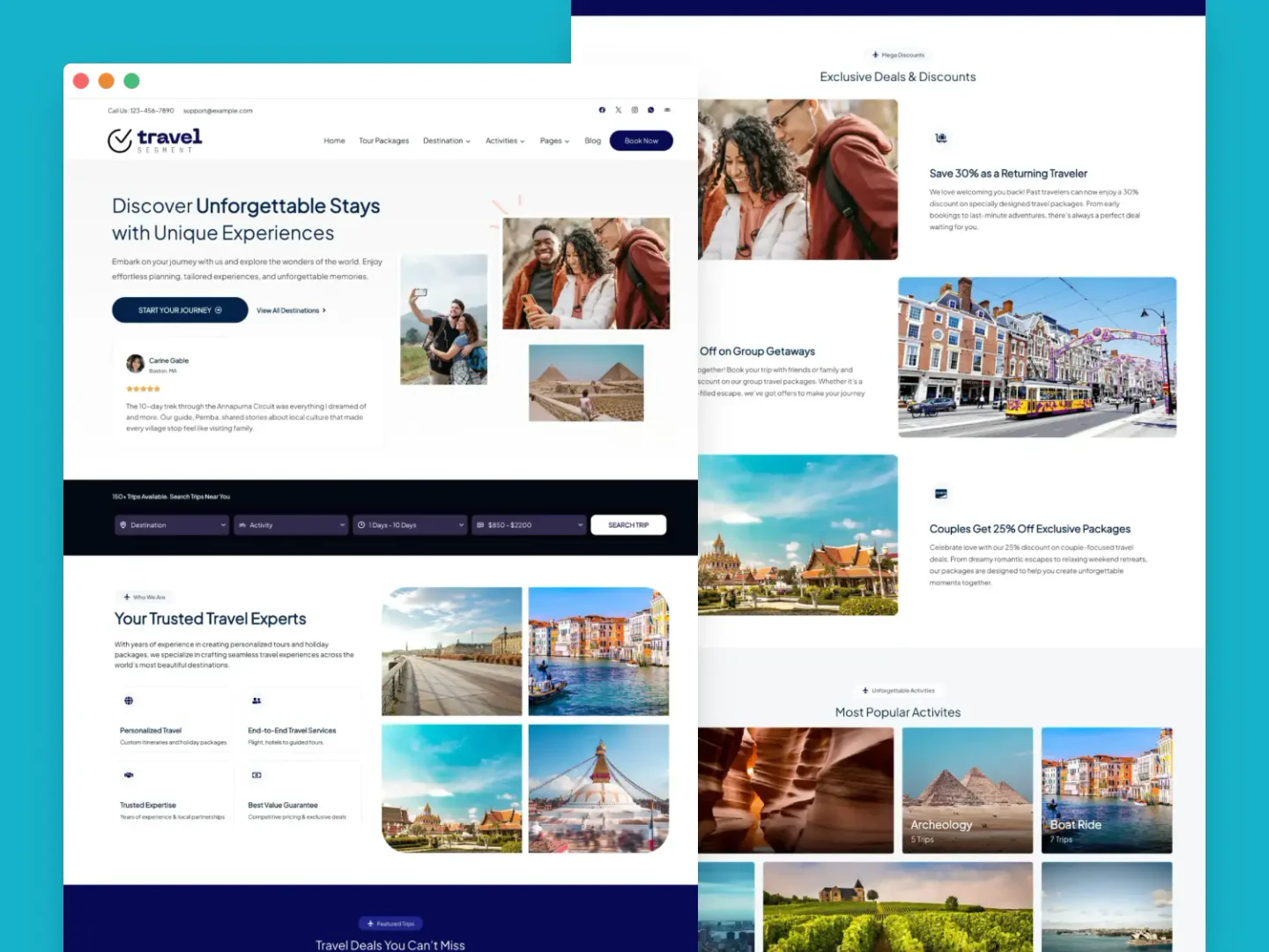 - Building Travel Booking Websites: Create comprehensive travel booking sites that showcase tour packages, itineraries, and pricing.