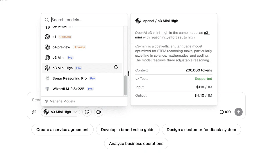 - Select a Model: Use the all-model switcher to choose the AI model that best suits your task, whether it's writing, coding, or generating images.