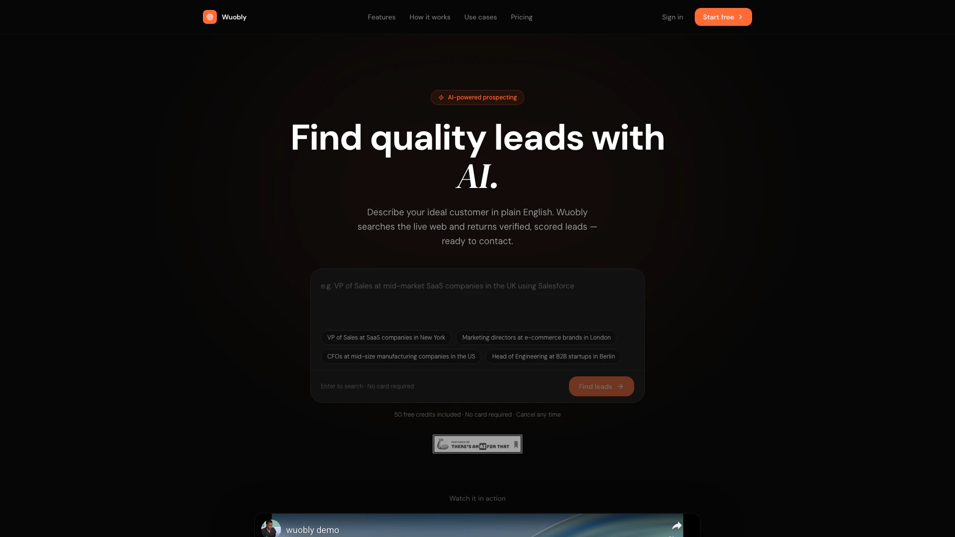 - AI-Powered Lead Generation: Wuobly utilizes AI to automatically search the web for leads, providing verified and scored contacts in under 2 minutes.