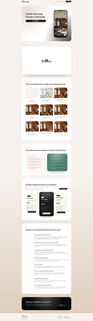 Xonaai is an innovative AI-powered[1] interior design platform that allows users to upload a photo and instantly generate photorealistic interior designs in various styles. The platform is designed for users who seek fast and professional-quality design visualizations without the need for extensive design knowledge or software downloads. With Xonaai, users can reimagine their spaces by simply uploading an image, making it accessible for homeowners, real estate agents, interior designers, and architects.
