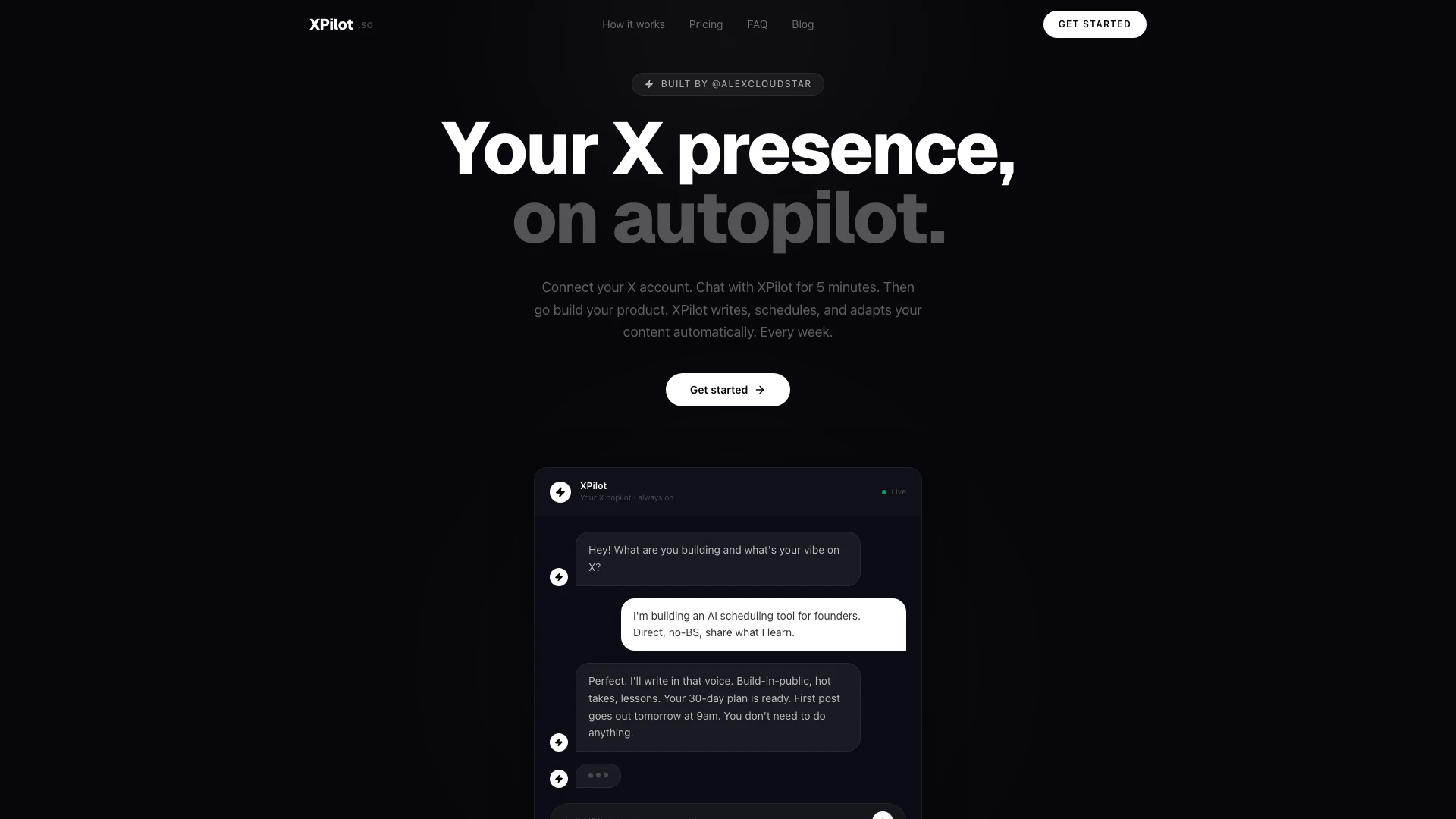 XPilot is an AI-powered[1] personal brand[2] copilot designed specifically for founders on X. This innovative tool automates the writing, scheduling, and adaptation of content, allowing users to focus on building their products. With a quick 5-minute onboarding process, XPilot learns your voice, opinions, and content preferences, generating a comprehensive 30-day content plan that aligns with your brand's tone and engagement strategy. The tool operates seamlessly in the background, posting content at optimal times and providing weekly insights to help you refine your approach.