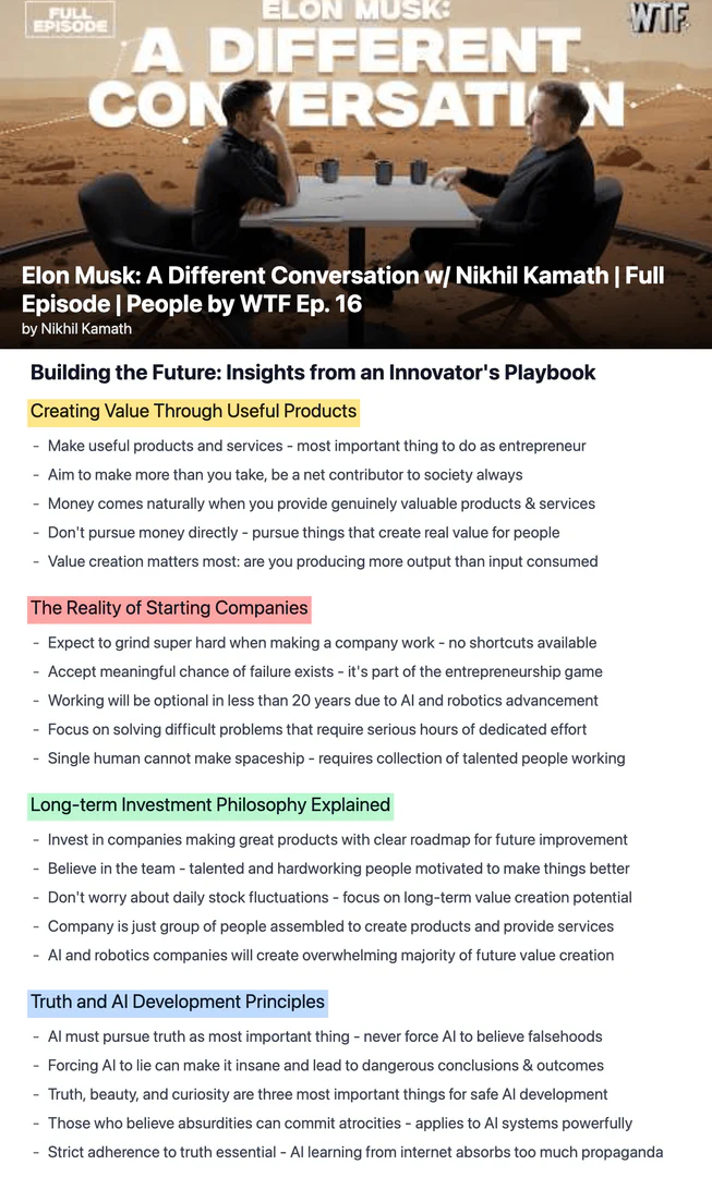 I turned a 2-hour podcast into 15 Twitter threads, 3 blog posts, and a cheatsheet. Took 4 minutes. My VA used to spend 8 hours on this.