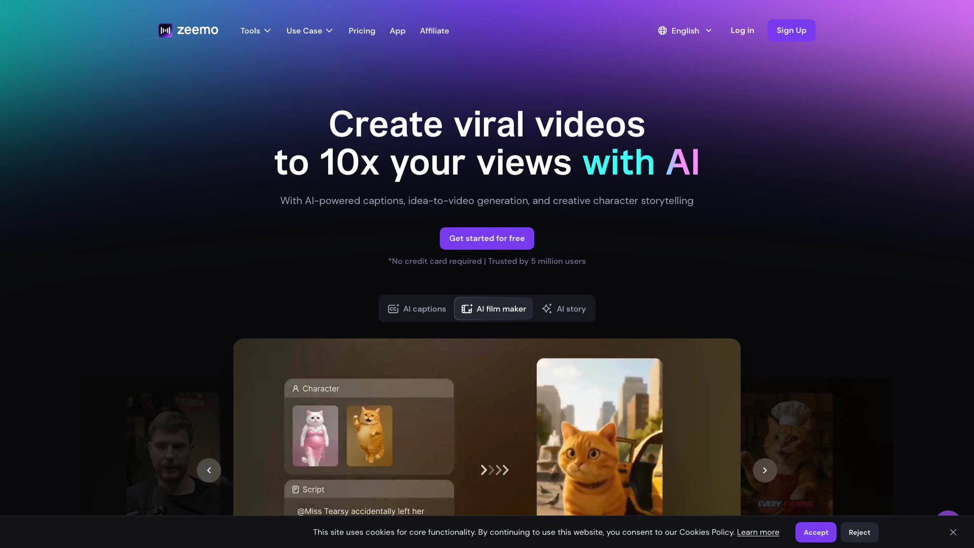 Zeemo is an innovative AI-powered tool designed to enhance video creation and social media engagement. It allows users to effortlessly create captivating videos with features such as stunning captions, narrative storytelling, and the ability to transform text into dynamic videos. Zeemo is tailored for those looking to boost their online reach and create viral content easily, making it an essential tool for marketers, content creators, and businesses aiming to maximize their digital presence.