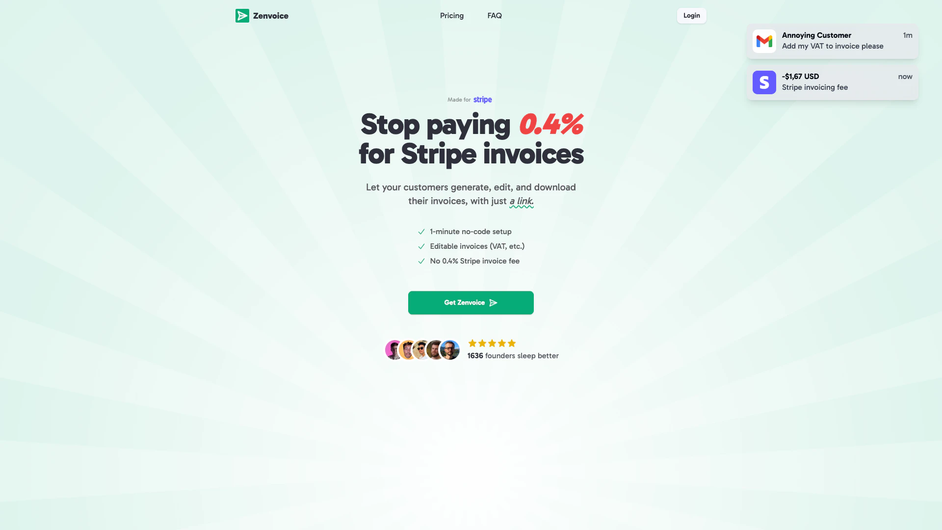 - No-Code Setup: Zenvoice allows for a quick, one-minute no-code setup, making it easy for users to integrate with their Stripe accounts.
