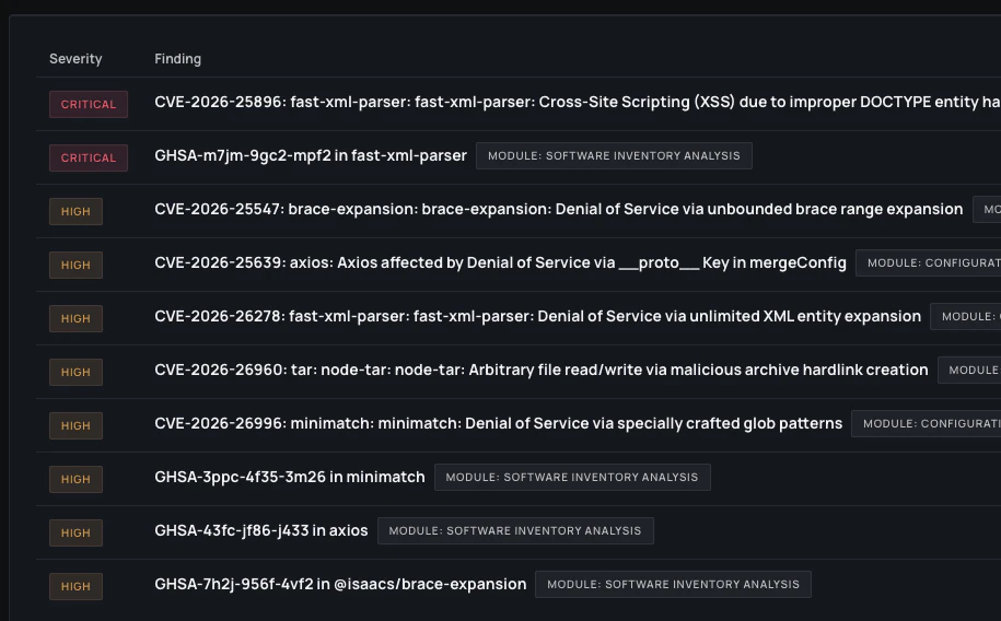 - Compliance and auditing: Generate exportable reports for compliance audits, ensuring that your software meets industry security standards.