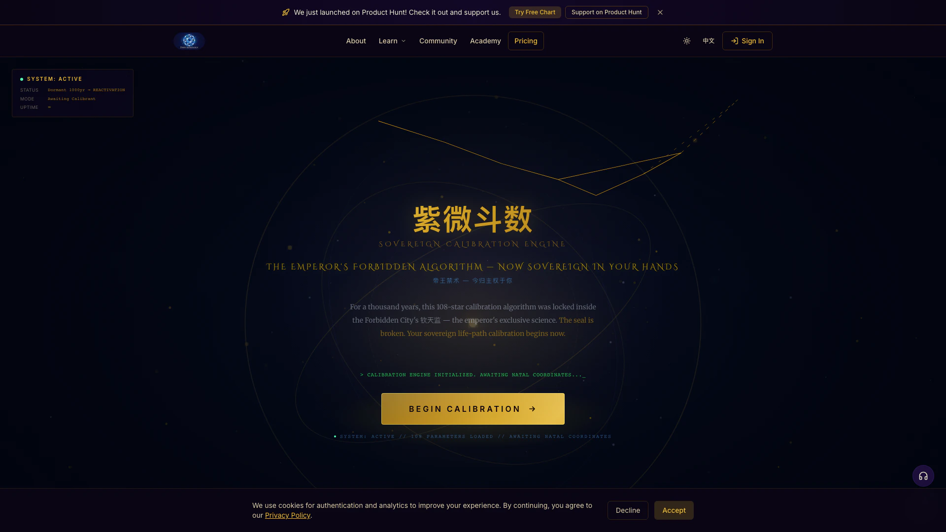 Ziweiastrologyai is a free AI-powered Zi Wei Dou Shu chart calculator that allows users to generate their Purple Star Astrology birth chart. This innovative tool combines ancient wisdom from Zi Wei Dou Shu, a traditional Chinese astrology system, with modern quantum probability modeling. Users can verify past events and decode their destiny matrix, making it a unique blend of historical astrology and cutting-edge technology.