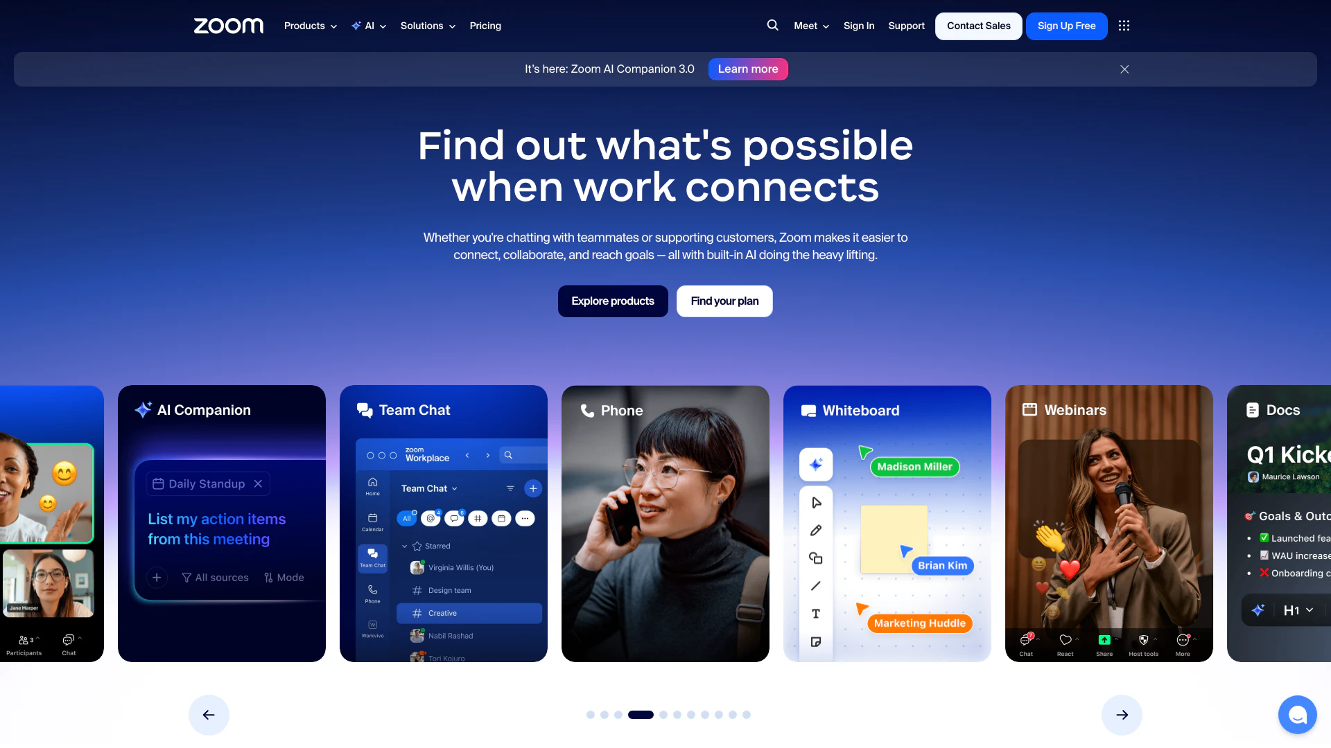 Zoom is a comprehensive communication platform that modernizes workflows through its suite of collaboration tools. These tools include video meetings[1], team chat[2], VoIP phone[3] services, webinars[4], whiteboard[5] functionalities, contact center[6] solutions, and event management capabilities. With its user-friendly interface and robust features, Zoom aims to enhance productivity and connectivity for individuals and organizations alike, making it a trusted choice for seamless collaboration.